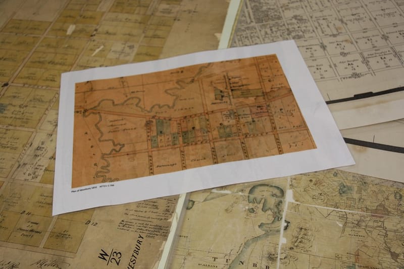 We have copies of a number of maps for the Westbury district, including the original land grant maps from the early military settlement.